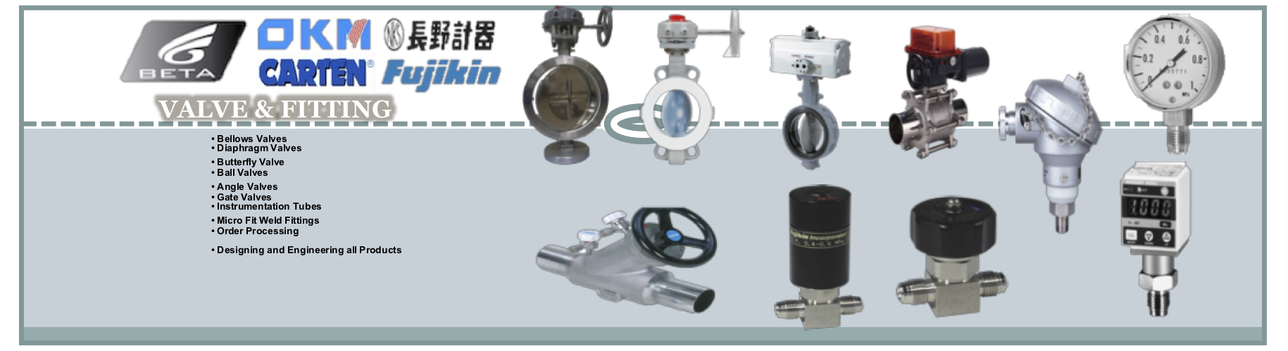 高純不銹鋼EP、BA/MP、AP等級(jí)管子/管道/管件;高純不銹鋼隔膜閥、波紋管閥、蝶閥、球閥、針閥、調(diào)壓閥等等;超純VCR、焊接、卡套接頭;以及設(shè)備應(yīng)用材料:壓力傳感器、壓力表、鋼瓶電子稱(chēng)、火焰探測(cè)器、氣體探測(cè)器、鋼瓶緊急切斷裝置、加熱毯、加熱線、PTFE保溫纏繞帶;化學(xué)品供應(yīng)系統(tǒng)中的PFA閥門(mén)以及括口和焊接接頭,不銹鋼內(nèi)襯PFA/PTFE管道、閥門(mén)、接頭等配件。